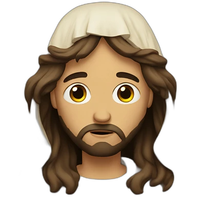 iPhone screen showing a digital painting of Jesus, clearly visible on the phone display emoji