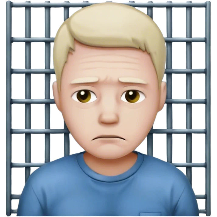 A bald old sad prisoner with a prison shirt does nothing behind bars emoji