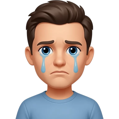 A sad 3D character sitting with slouched shoulders, looking down, and frowning. Teardrops on the face, hands resting in their lap, with soft blue tones enhancing the melancholic mood. emoji