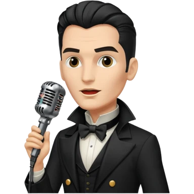 cinematic - musician Falco - wearing black tailcoat and sings on a retro antique microphone emoji