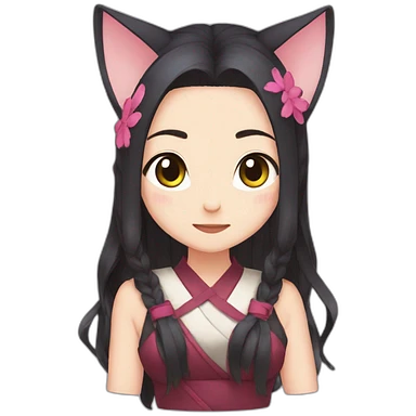 cute Nezuko from Demon Slayer with bamboo muzzle in her mouth and pink eyes emoji