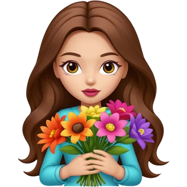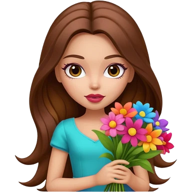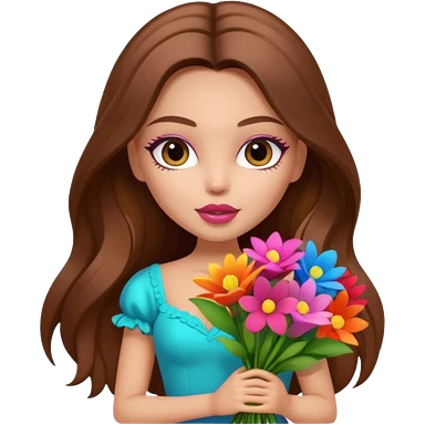 stylish pretty bratz baddie, long brown hair holding big bouet of flowers emoji