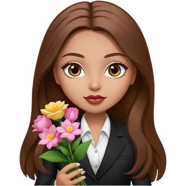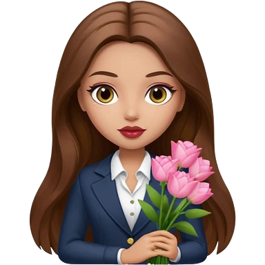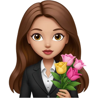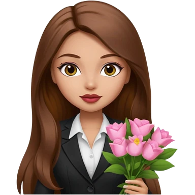 corporate pretty bratz baddie, long brown hair holding flowers emoji