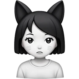Chibi kawaii Kuromi, violet eyes, black-blue twin tails, red ribbons, red beanie, black & white lolita dress with red accents, white thigh-highs, black mary janes, cute aesthetic. emoji