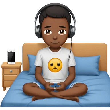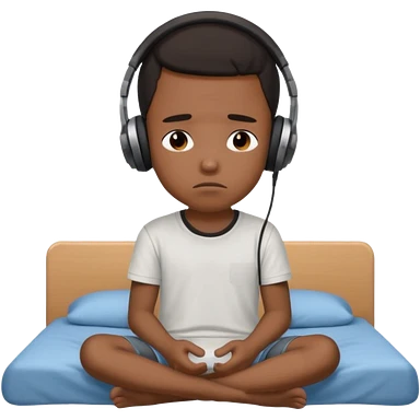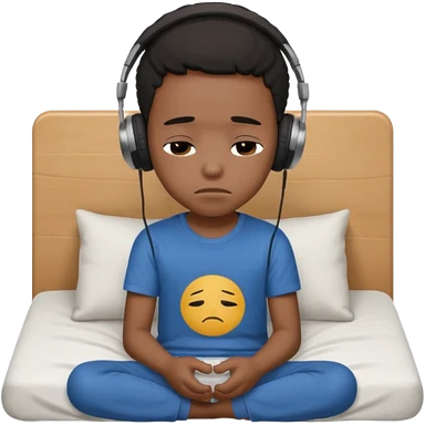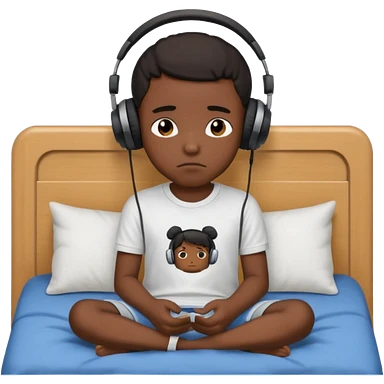 Sad black kid with headphones on sitting on a bed emoji