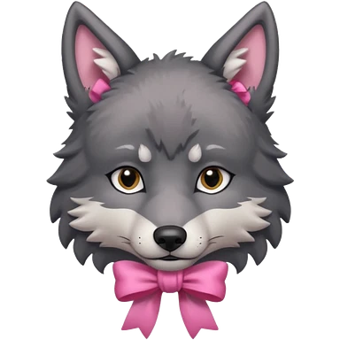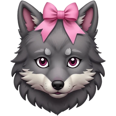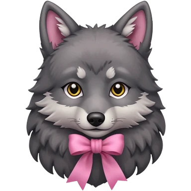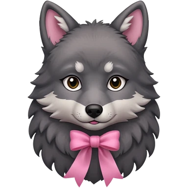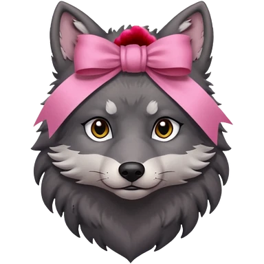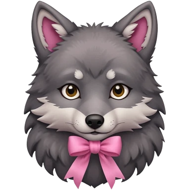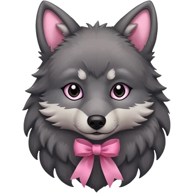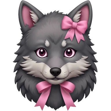 sad š„ŗ cute dark grey wolf with a pink ribbon ion his head emoji
