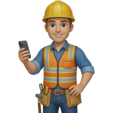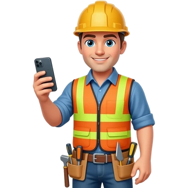 general contractor with no safety vest or helmet on a call holding their smartphone with a tool belt emoji