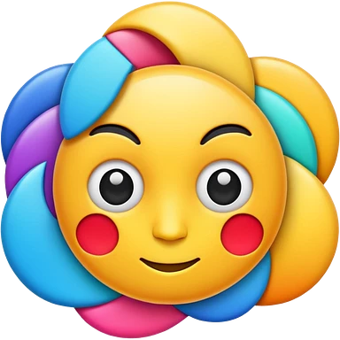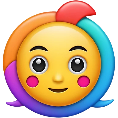 cute round emoji, simple flat vector style, minimal details, glowing aura effect, colorful sparkles and light trail swirling around, transformation effect, magical appearance, high quality, white background emoji