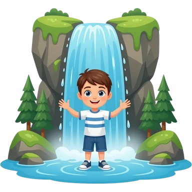 A beautiful waterfall scenery and I'm standing under the waterfall with my hands open. (I'm a boy) emoji