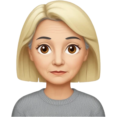 Rea emoji bionda di 70 anni occhi castani sopracciglia nere faccia più paffutella e maglione grigio ma le sopracciglia nere emoji