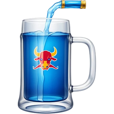Large clear glass mug similar to beer stein with bright blue liquid inside. Put an upside down redbull can sticking out of the top of the mug emoji