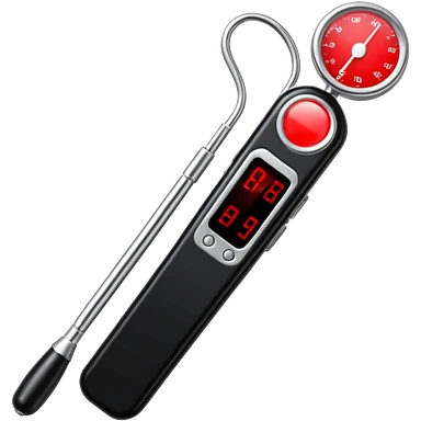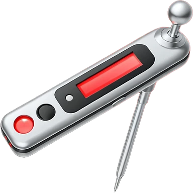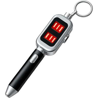 the neuralyzer from Men in Black movies; a pocket sized, extendable silver probe with a red light that flashes at the tip and 3 small black dials in the extended part; same width from end to end emoji