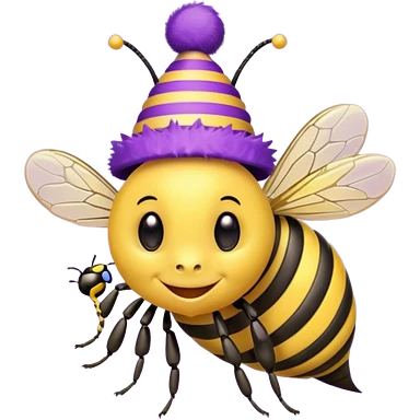 a Bee with purle Birthday Hat, Bee blowing party horn emoji