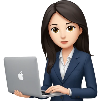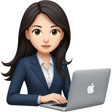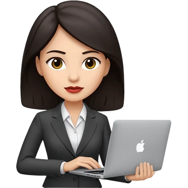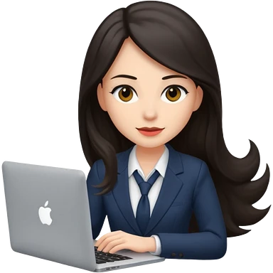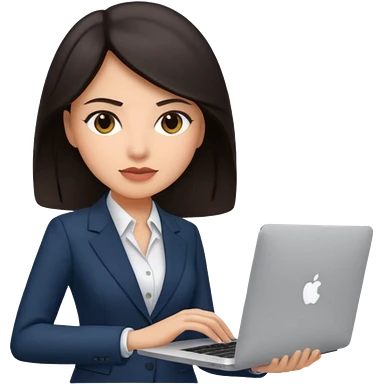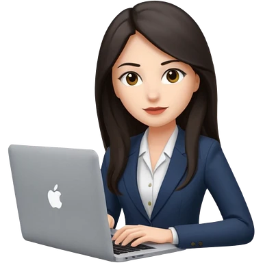 Sales women specialist in shipping with dark long hair with suits and MacBook emoji