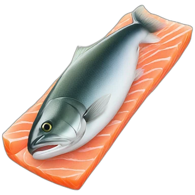 Cute Kawaii Sashimi Slice, delicate and fresh, bright orange salmon with soft pastel textures, an adorable happy face, tiny chopsticks lifting it, gentle glowing highlights! emoji