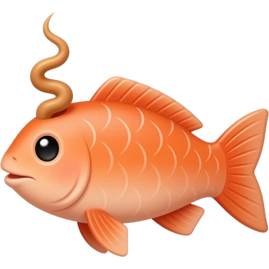 salmon with a single curly hair poking out of its head emoji
