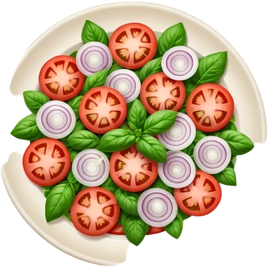 Fai un miscuglio di pomodoro fresco, cipolla, basilico e origano emoji