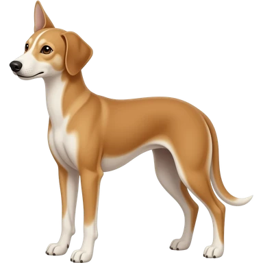 Fluffy dog saluki with tattoos and holographic harness running emoji