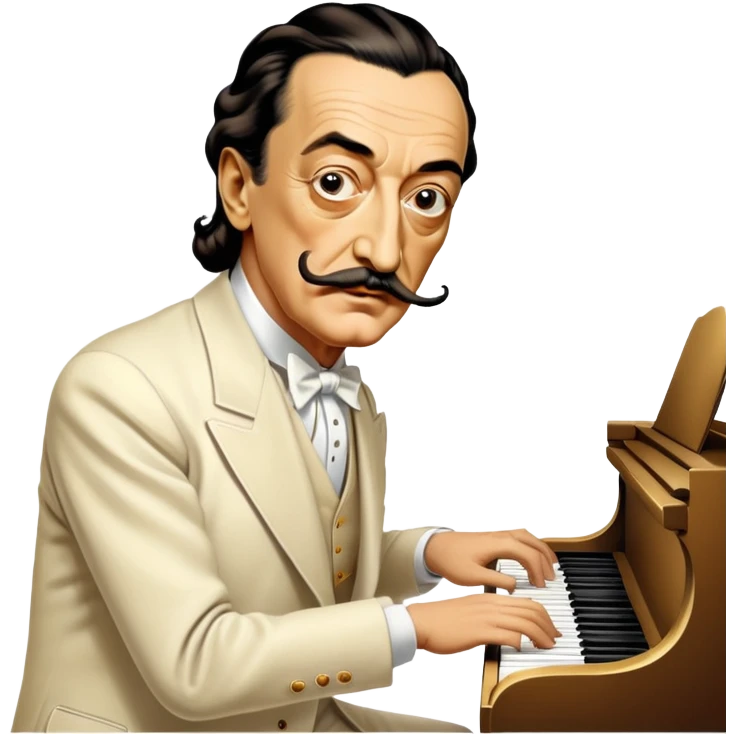 Salvador Dali with his iconic mustache playing a piano emoji | AI Emoji Generator