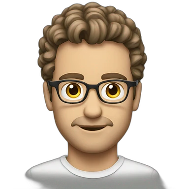 Oliver Riedel, apple style emoji, bald, mustache and goatee, serious face, black t-shirt emoji