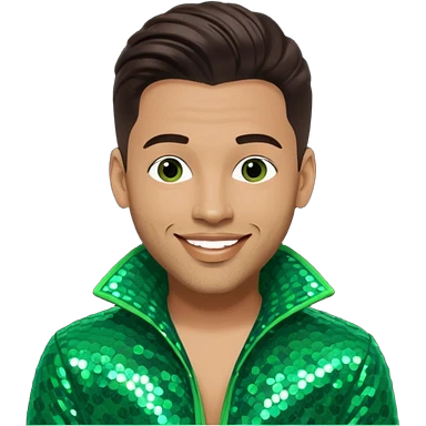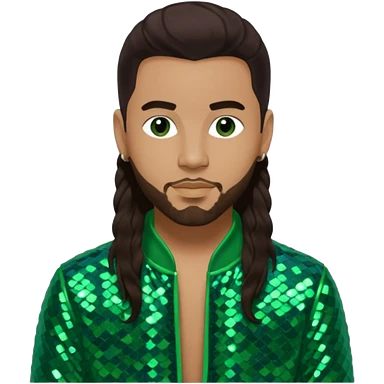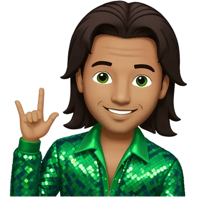 Sam Watters, R&B Singer (b. 1970) from Color Me Badd with long dark brown hair, green sequin outfit emoji