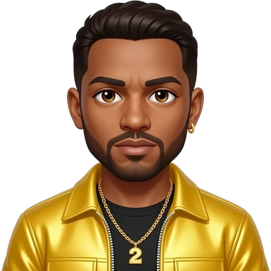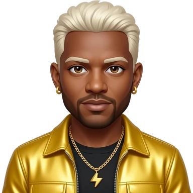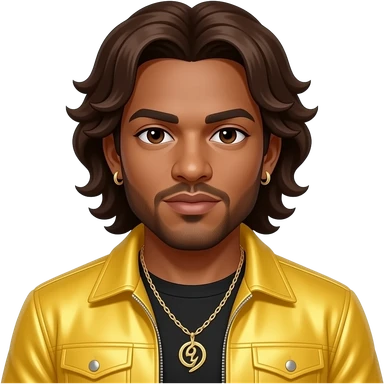 Bryan Abrams from Color Me Badd with brown eyes, dark brown 90s hair and short beard, yellow metallic new jack swing outfit, necklace and earrings emoji