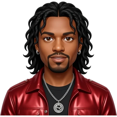 Kevin Thornton from Color Me Badd with dark brown eyes, long black 90s hair and short beard, red metallic new jack swing outfit, necklace and earrings emoji