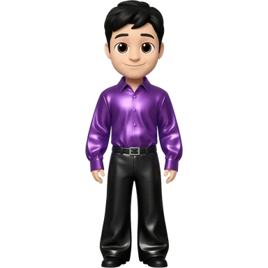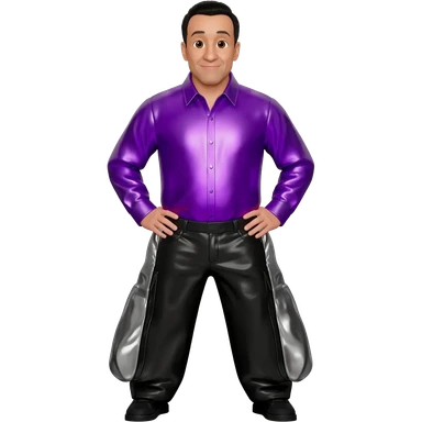 Jeff Fatt from The Wiggles with brown eyes, black hair, purple metallic shirt, white metallic baggy pants emoji