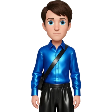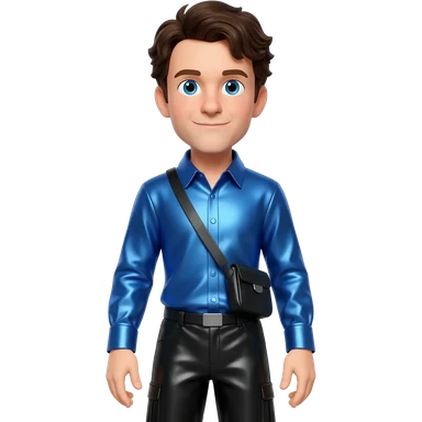 Anthony Field from The Wiggles with blue eyes, dark brown hair, blue metallic shirt, black metallic baggy pants emoji