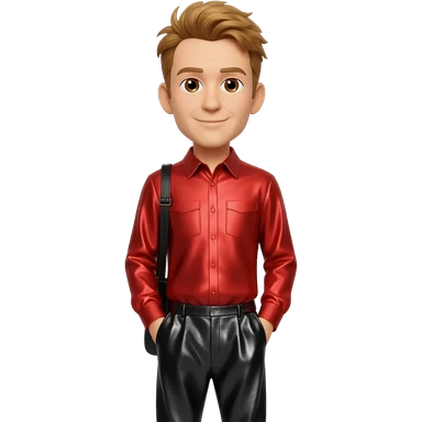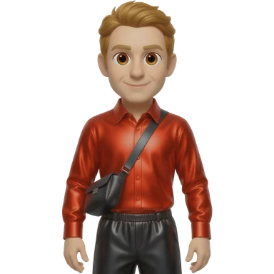 Murray Cook from The Wiggles with brown eyes, golden brown hair, red metallic shirt, black metallic baggy pants emoji
