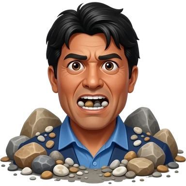 Same guy but more rocks and pebbles and ash make him look crazy. Like he loves the pebbles Bolivian guy. Pebbles in his mouth emoji
