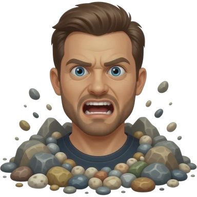 Same guy but more rocks and pebbles and ash make him look crazy. Like he loves the pebbles emoji