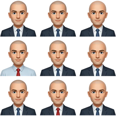 The beards are all perfect, but they should all be 100% clean shaved bald heads but keep everything else the same emoji