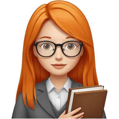Long Hair Women with Book, Orange straight Hair, glasses emoji