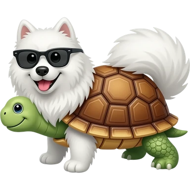 samoyed wearing sunglass above a turtle emoji