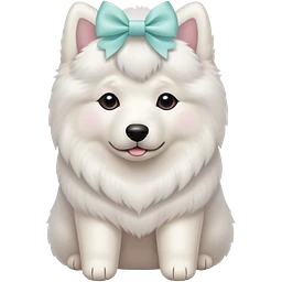 Cinematic Cute Samoyed Portrait Emoji, Head tilted playfully and inquisitively, featuring a fluffy, pristine white Fur with a natural sheen, round, sparkling blue eyes filled with curiosity, Simplified yet irresistibly adorable features, highly detailed, glowing with a warm, friendly glow, high shine, affectionate and lively, stylized with a touch of whimsy, bright and endearing, soft glowing outline, capturing the essence of a mischievous yet loving companion, so playful it feels like it could frolic out of the screen and into your arms! emoji