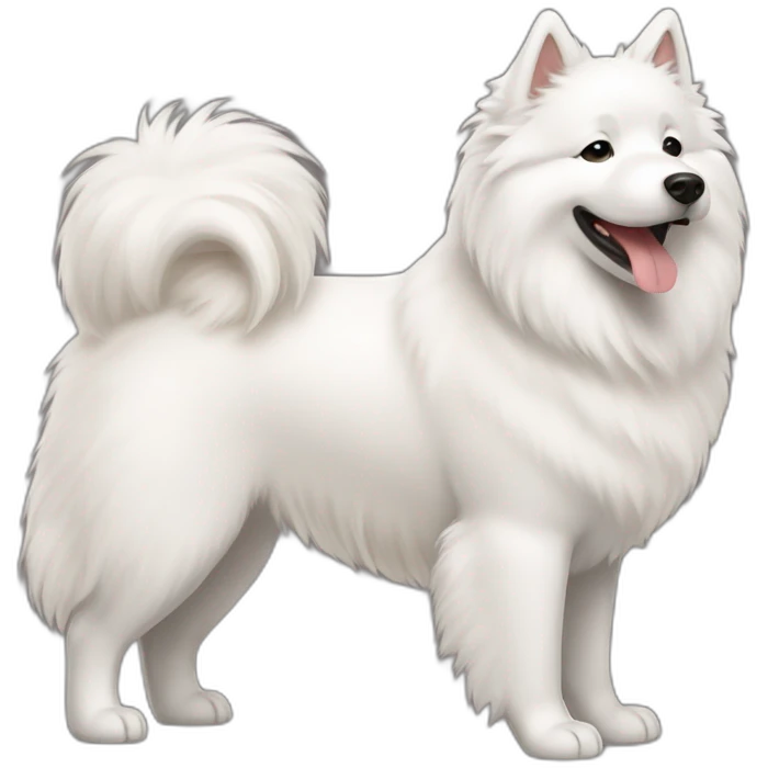 Chica de cabello castaño oscuro con un Perro samoyedo emoji
