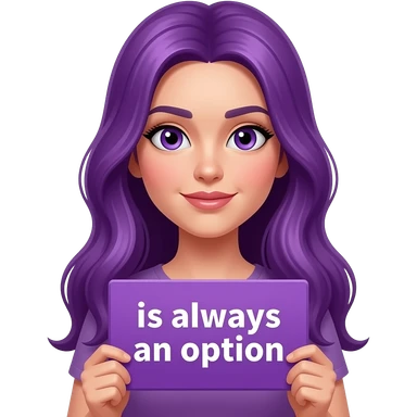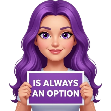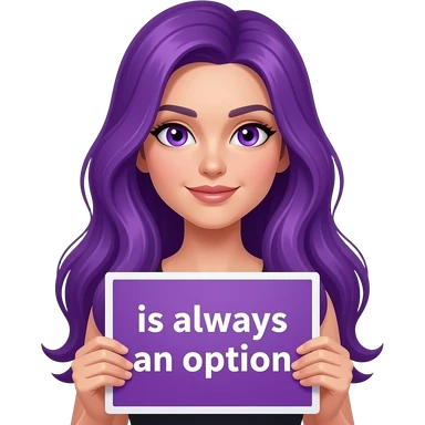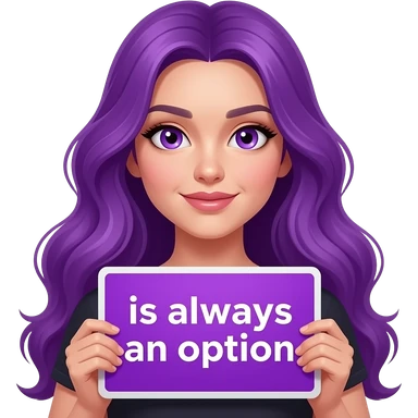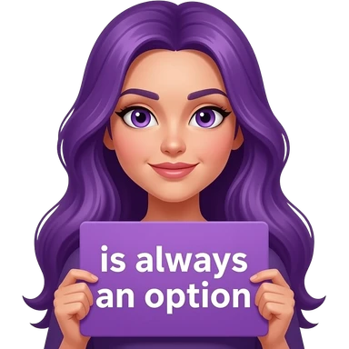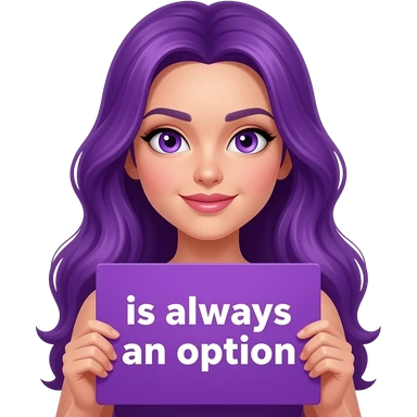 sexy girl with long purple hair and purple eyes holding a PURPLE is always an option sign emoji