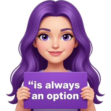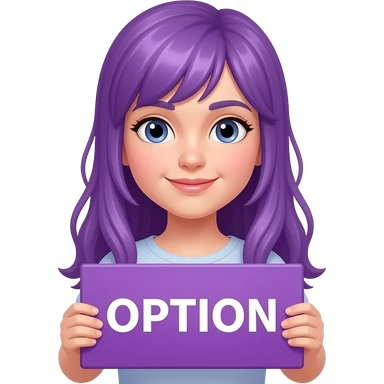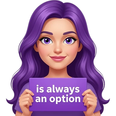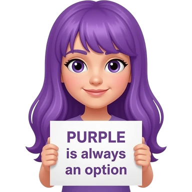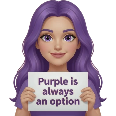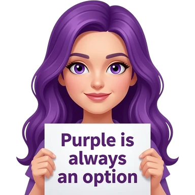 sexy girl with long purple hair and purple eyes holding a -PURPLE- is always an option sign emoji