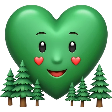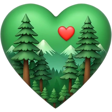 a big green heart emoji with small pine trees behind it and i love you text on the front of the heart emoji