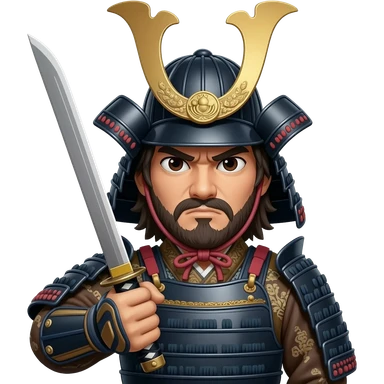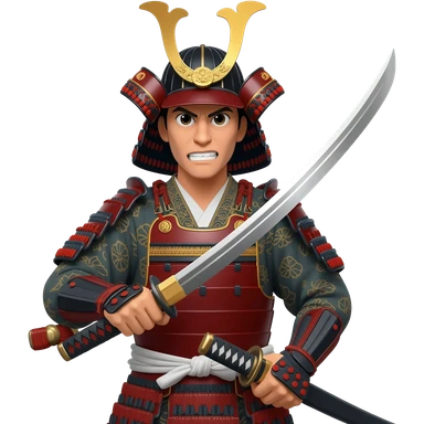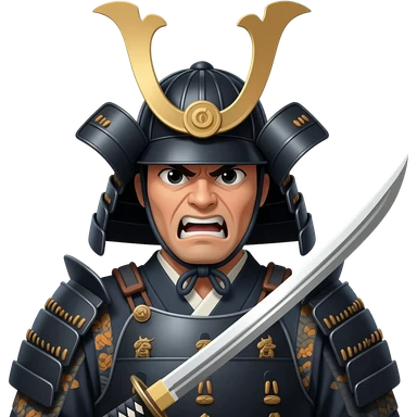 Samurai with helmet and a detailed mask covering their mouth and they are drawing out their sword emoji