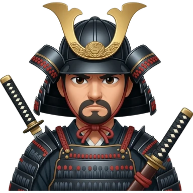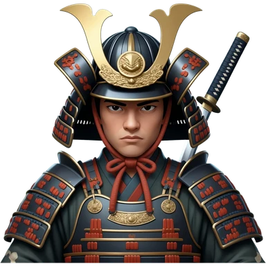 Samurai with helmet and an oni mask covering their mouth but you can see their eyes emoji