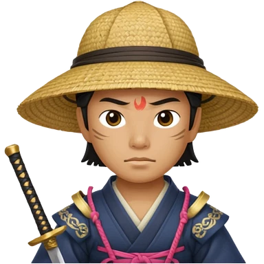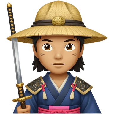 Samurais in Hat, Samurai with straw hat and sword sheath emoji