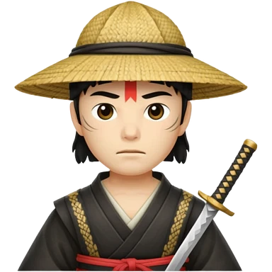 Samurais in Hat, Samurai with straw hat and sword sheath emoji
