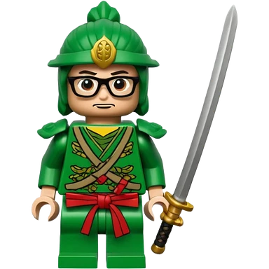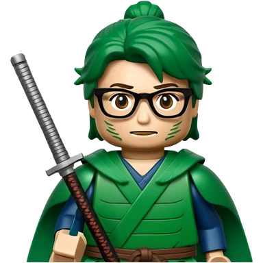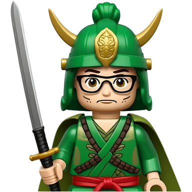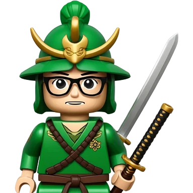 lego Samurai with glasses, Warrior in green samurai armor, with katana emoji