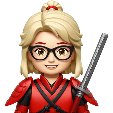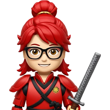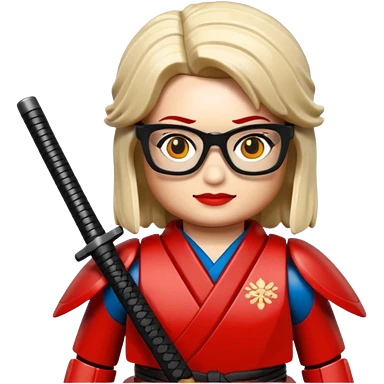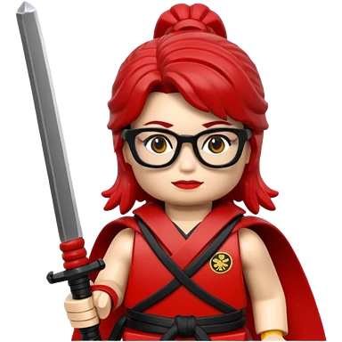 lego Samurai with glasses, Warrior in red samurai armor, female, with katana emoji