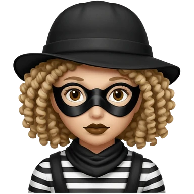 woman with robber mask concerned curly hair and robber outfit hat emoji