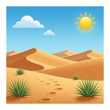 Generate an emoji of a desert landscape with sand dunes, a glowing sunset in the background, and a cactus in the foreground. Use warm oranges, yellows, and reds to create a dramatic and aesthetic desert scene. emoji