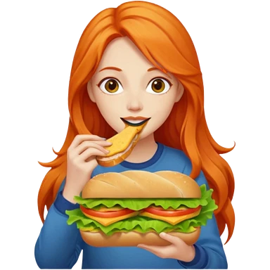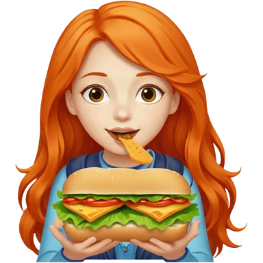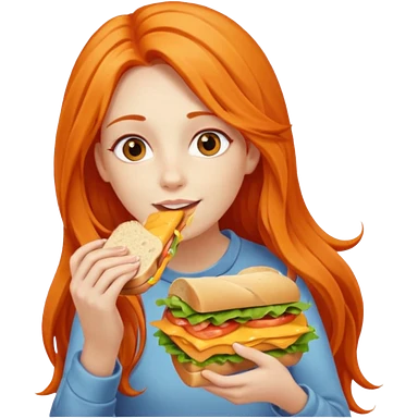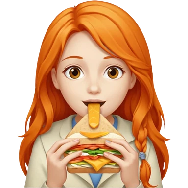 Duas meninas de cor brancas com os cabelos na cor preta e liso, comendo sanduiche emoji