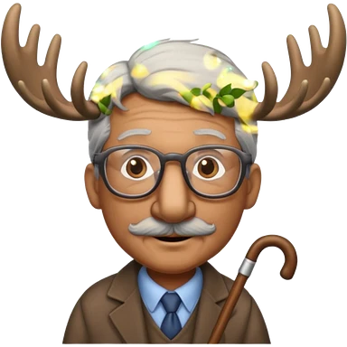 Create a slack emoji of a moose that looks very old. He may have grey hair, glasses, and a cane. emoji